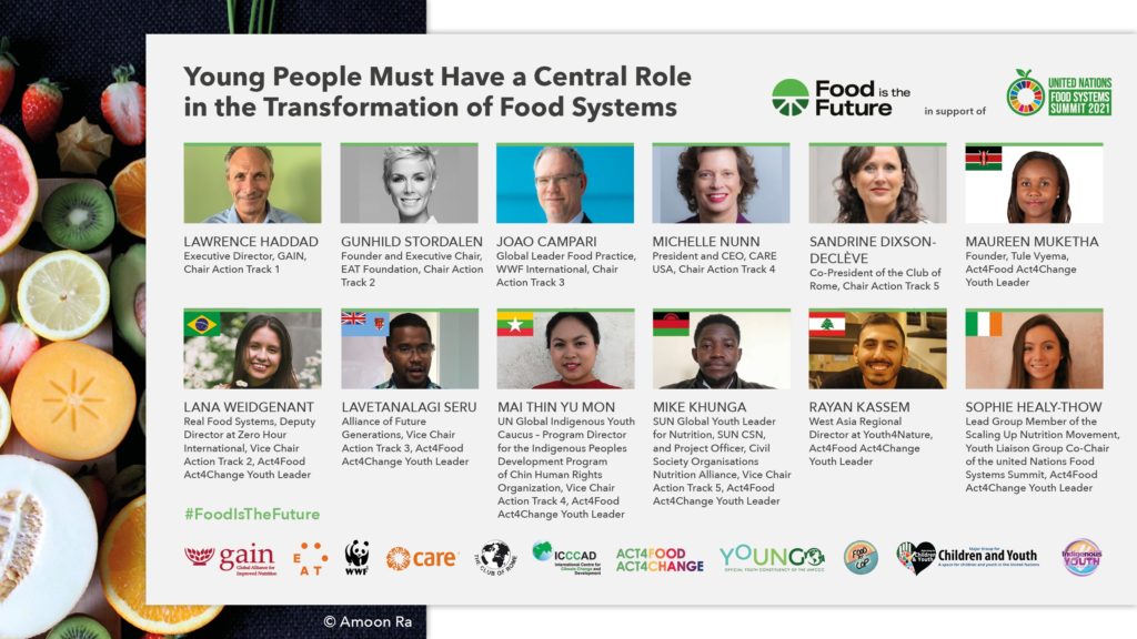 El evento ‘Food is the Future’ del 22 de septiembre le dará un inédito protagonismo a la juventud a la apremiante hora de transformar los sistemas de alimentación. Este evento viene organizado conjuntamente por las iniciativas de los jóvenes Act4Food Act4Change, YOUNGO, Food@COP, Major Group for Children y Youth (MGCY), y Global Indigenous Youth Caucus (GIYC) con el activo respaldo de CARE, EAT, WWF, GAIN, ICCCAD y el Club de Roma.